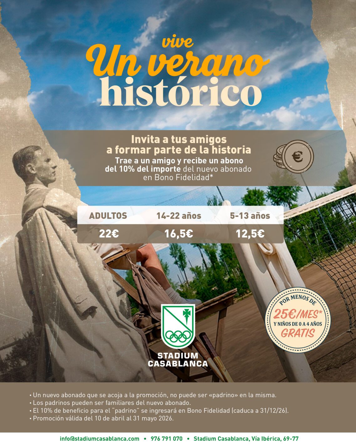 Trae a tus amigos y familiares a Stadium Casablanca y consigue descuentos exclusivos en tu cuota. ¡Juntos vais a vivir un verano increíble! No hay mejor momento para pasar a formar parte de la historia de nuestro club.