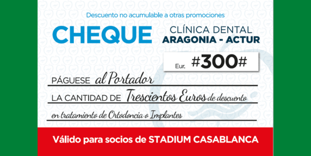 Aragonia Clínica Dental regala cheques de 300 € en ortodoncia e implantes para los abonados de Stadium