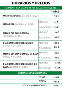 El horario amplio de actividad, así como la flexibilidad de entradas y salidas para que durante las vacaciones de Semana Santa puedas conciliar la vida laboral con la familiar de la manera más cómoda posible.