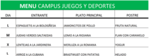 ¿Cuál es el menú durante el campamento urbano?