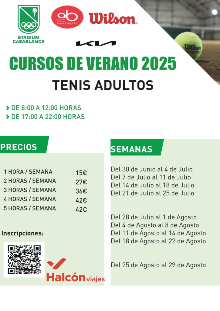 Llega un nuevo verano y con él, la posibilidad de apuntarte a nuestros cursos de verano para adultos. Tenemos una amplia variedad de fechas y horarios para que elijas el que más te convenga . Nos adaptamos a tus necesidades y disponibilidad para que puedas venir a Stadium Casablanca a disfrutar de tu deporte favorito.