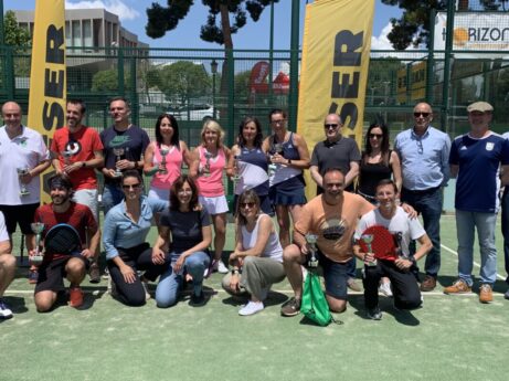 Ayer domingo, se celebraron las finales del I OPEN KAESER STADIUM CASABLANCA en la que fue una fantástica mañana de padel y asistencia de público, a las pistas de nuestro Club y en la que se pudo disfrutar de grandes partidos, sorteo de premios y aperitivos. En el acto de entrega de premios se pudo contar con la presencia de Dña. Mada Carruesco Lapuebla y D.Miguel Ángel Calvo Mestre, vocales de la Junta Directiva de Stadium Casablanca; D. Chema Naval Barnaba, presidente del Club Deportivo, y D. Ignacio García Aguaviva, gerente de Kaeser Compresores, empresa patrocinadora del torneo. Agradecer a nuestros colaboradores, Cofradía De Las Siete Palabras, Adidas, Solución Sport, Wilson, Stadium Casablanca y al patrocinador del torneo Kaeser Compresores sin los que no hubiese sido posible este torneo. Los finalistas fueron: Subcampeonas Consolación Femenina: Elena Gil/Natalia Martínez. Campeonas Consolación Femenina: Pilar Arto/Susana Pérez. Subcampeones Consolación Masculino: Héctor Felipe/ Alejandro Aranda. Campeones Consolación Masculino: Raul Marco/Nacho Jiménez. Subcampeonas Fase Final Femenina: Ana Castillo/Yolanda Traid. Campeonas Fase Final Femenina: Isabel Fontant/Eva Osanz. Subcampeones Fase Final Masculino: Santi Díaz/Juan I. Laguna. Campeones Fase Final Masculino: Luis Lalanza/Nacho Cebrián. Muchas gracias y un saludo.